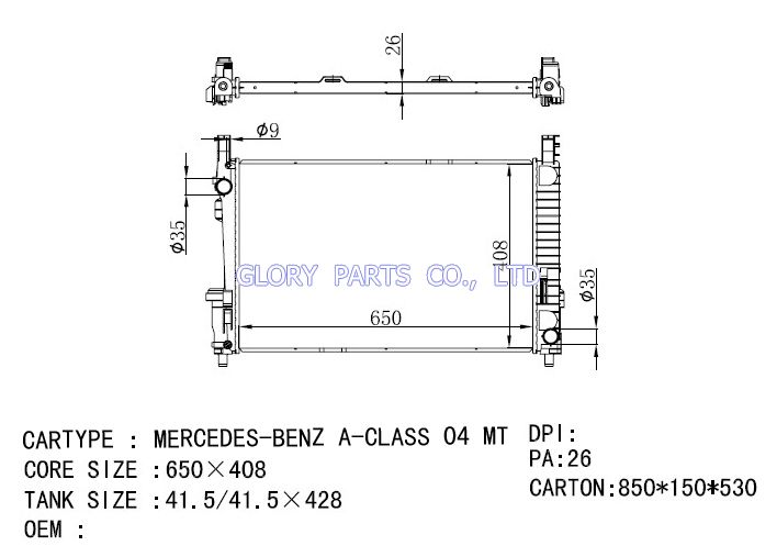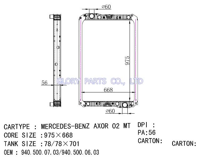 DPI: NISSENS: 625710/62571A OEM: 9405000603/9405000703 CAR MODEL: Mercedes-Benz Axor 02- Auto radiator/automovil radiadores