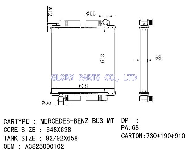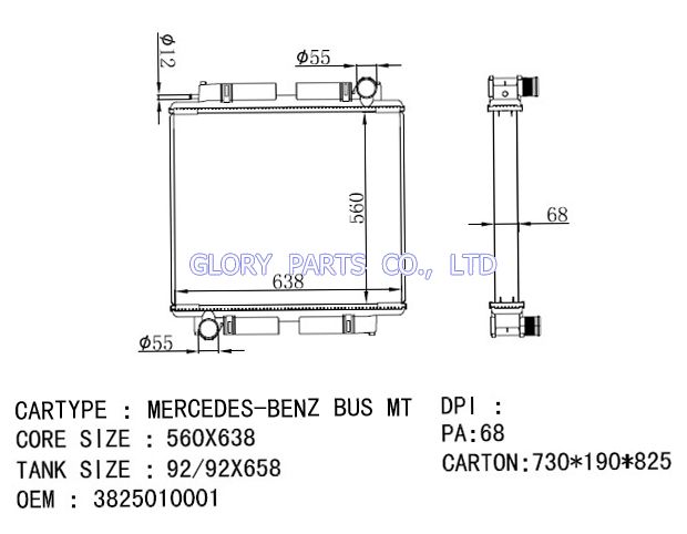DPI: NISSENS: OEM: 3825010001 CAR MODEL: Mercedes-Benz Bus Auto radiator/automovil radiadores
