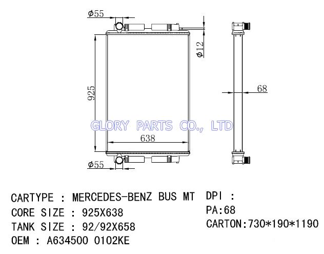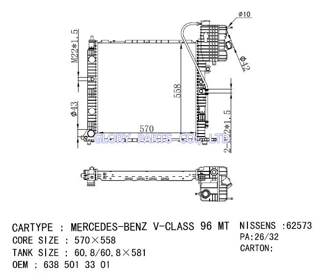 DPI: NISSENS: OEM: A6345000102KE CAR MODEL: Mercedes-Benz Bus Auto radiator/automovil radiadores