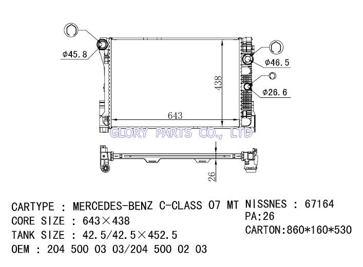 DPI: NISSENS: 67164 OEM: 2045000303 CAR MODEL:Mercedes-Benz C-Class 07- Auto radiator/automovil radiadores