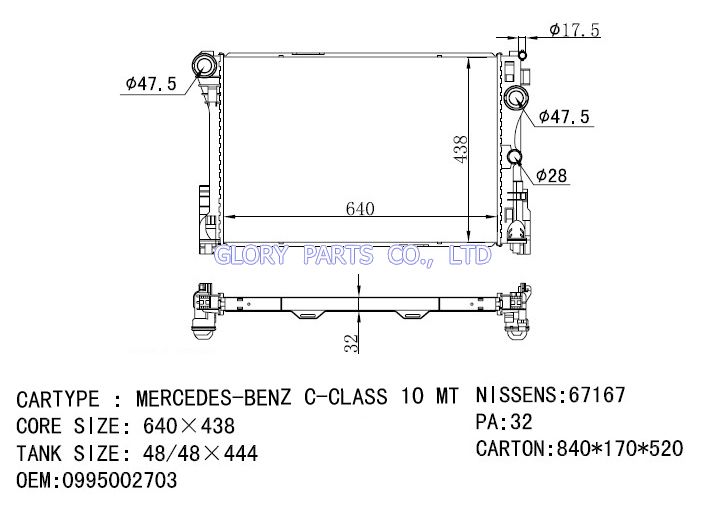 DPI: NISSENS: 67167 OEM: 0995002703 CAR MODEL:Mercedes-Benz C-Class 10- Auto radiator/automovil radiadores