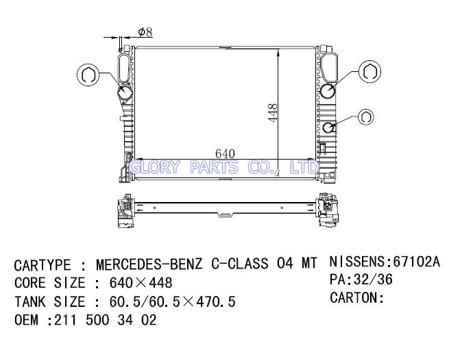 DPI: NISSENS: 67102A OEM: 2115003402 CAR MODEL:Mercedes-Benz C-Class 04- Auto radiator/automovil radiadores