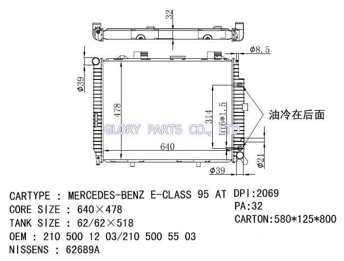 DPI: 2069 NISSENS: 62689A OEM: 2105001203 CAR MODEL:Mercedes-Benz E-Class 95- Auto radiator/automovil radiadores