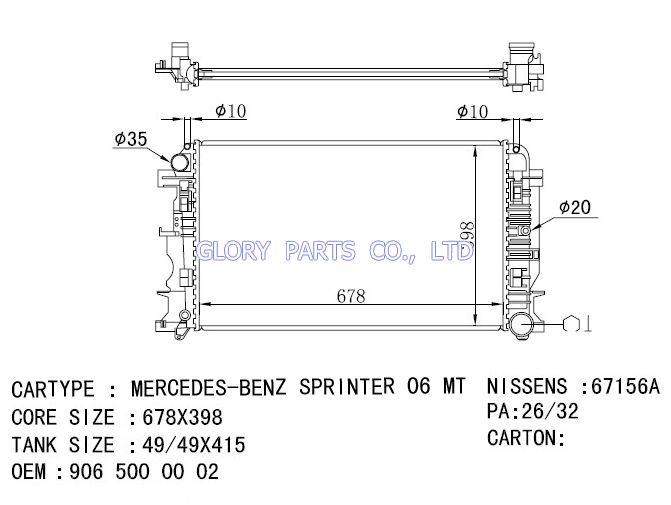 DPI: 13254 NISSENS: 67157A OEM: 9065000402 CAR MODEL:Mercedes-Benz Sprinter 06 Auto radiator/automovil radiadores
