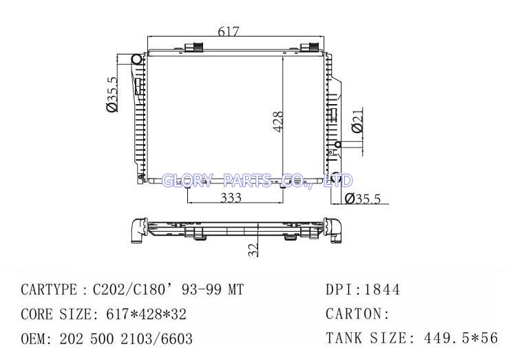 DPI: 1844 NISSENS: 62750A OEM: 2025002103/2025006603 CAR MODEL: Mercedes-Benz C180 Auto radiator/automovil radiadores