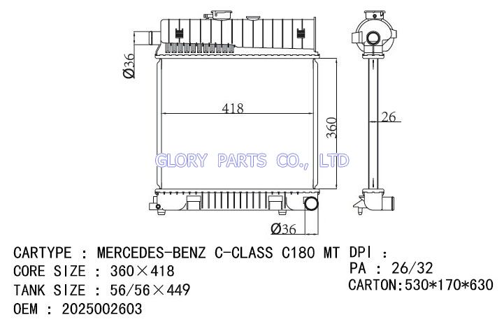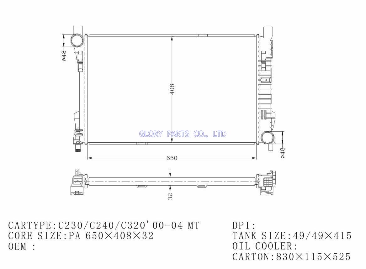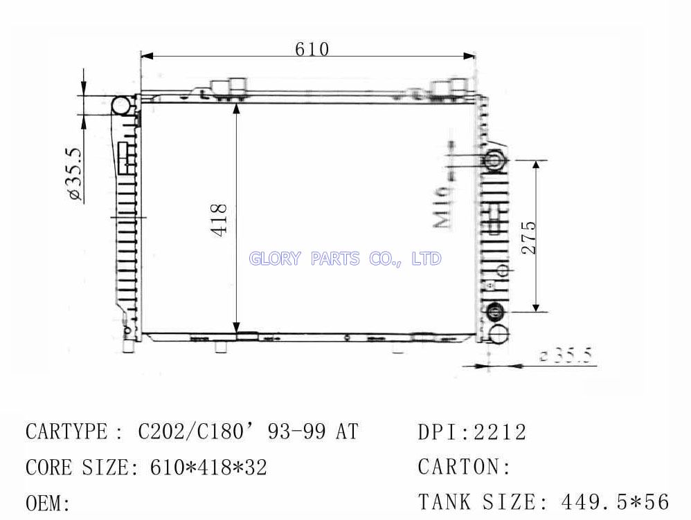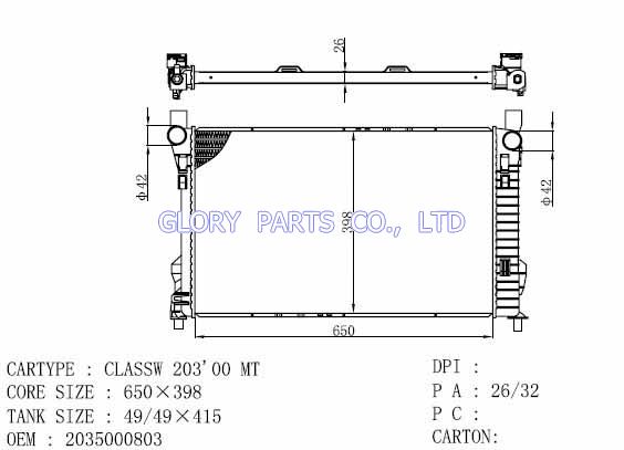 DPI: 2212 NISSENS: 62756A /62749A OEM: 2025002203/2025006703 CAR MODEL: Mercedes-Benz C180 Auto radiator/automovil radiadores