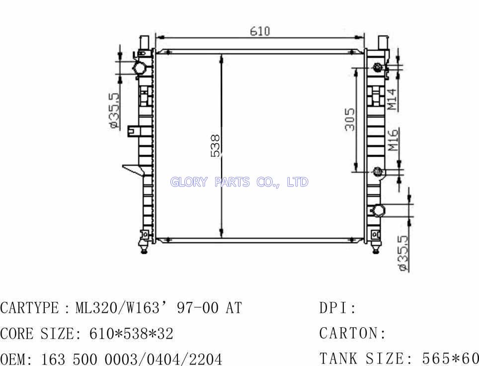 DPI: 2190 NISSENS: 62619/62788A OEM: 1635000003 CAR MODEL: Mercedes-Benz C-class Auto radiator/automovil radiadores