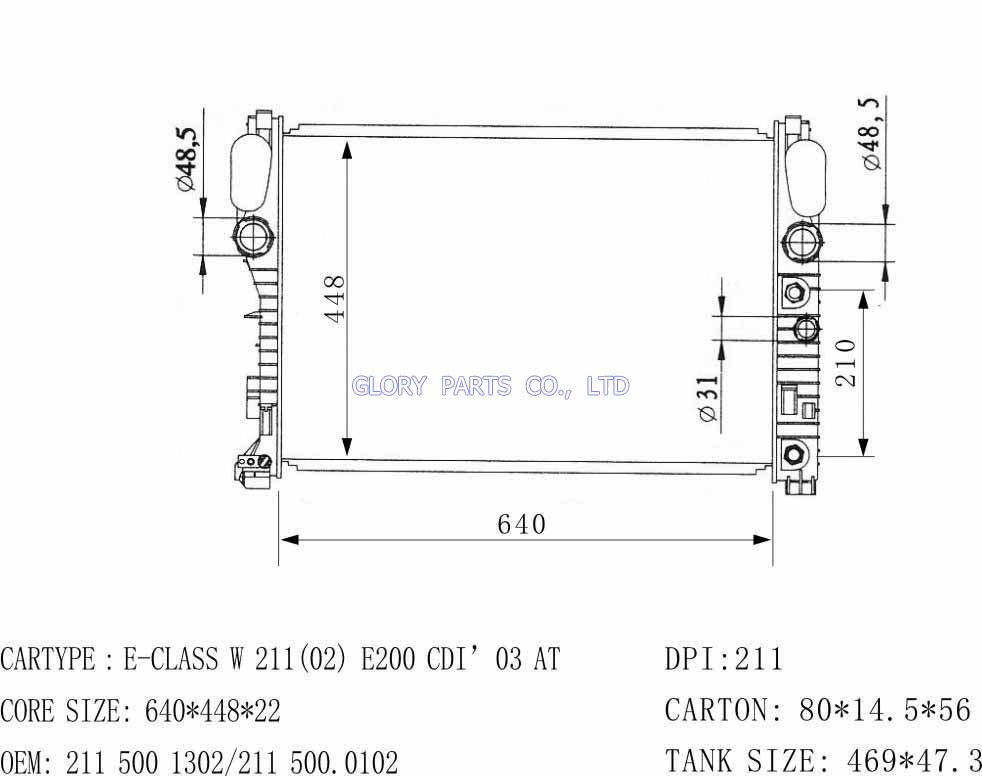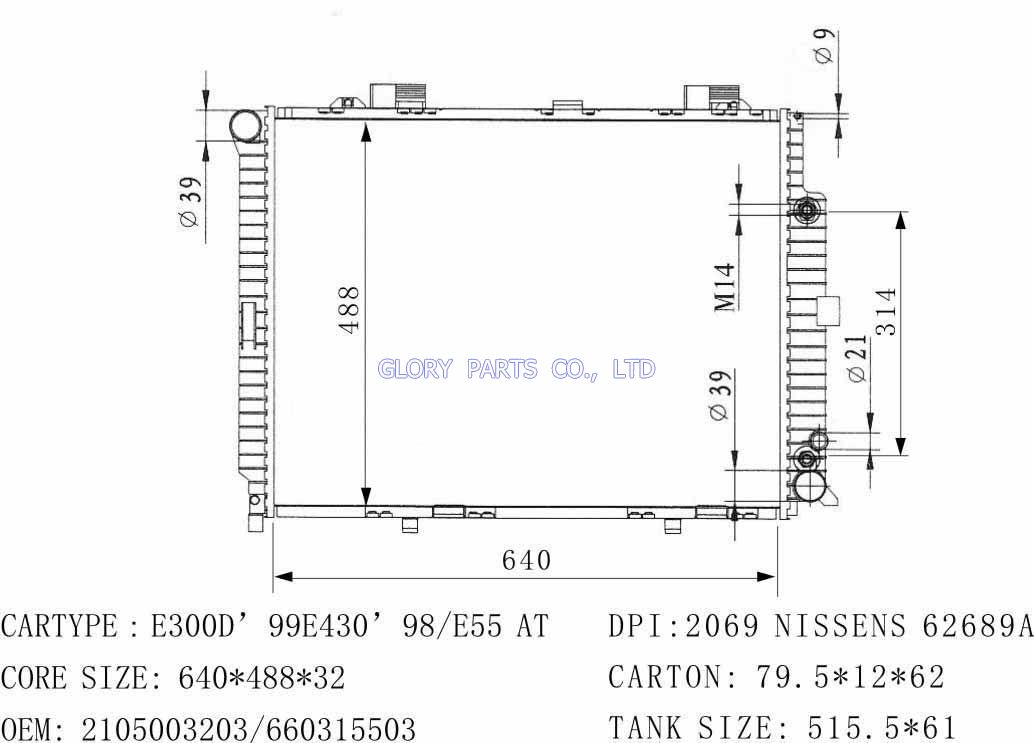 DPI: NISSENS: 62612A OEM: 2105003203/660315503 CAR MODEL: Mercedes-Benz E300D Auto radiator/automovil radiadores