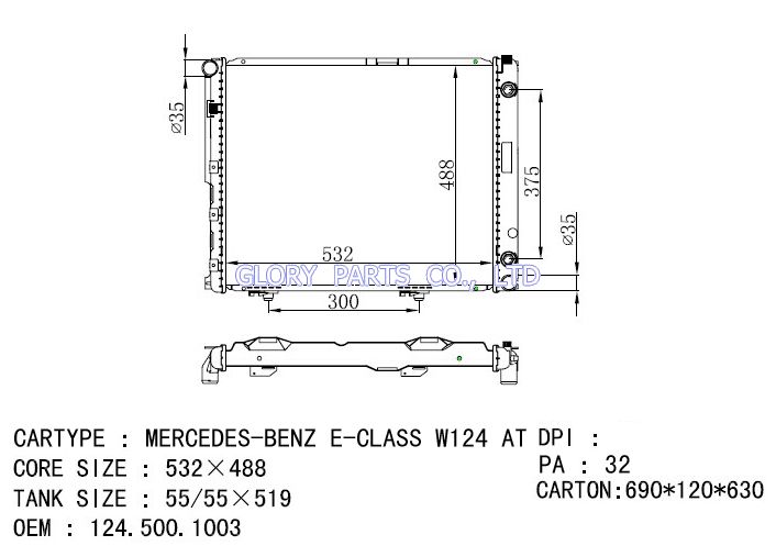 DPI: NISSENS: 62698A/62694A OEM: 1245004403 CAR MODEL: Mercedes-Benz E-Class Auto radiator/automovil radiadores