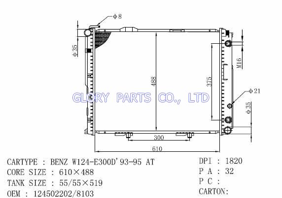 DPI: 1310/1820 NISSENS: 62679A OEM: 1245000302 CAR MODEL: Mercedes-Benz E-Class Auto radiator/automovil radiadores
