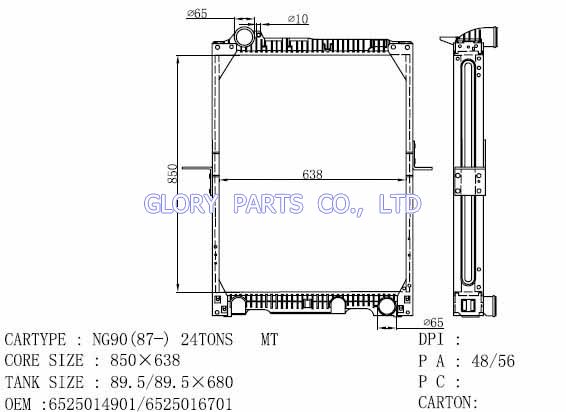 DPI: NISSENS: 626570 OEM: 6525014901/6525016701 CAR MODEL: Mercedes-Benz NG Auto radiator/automovil radiadores