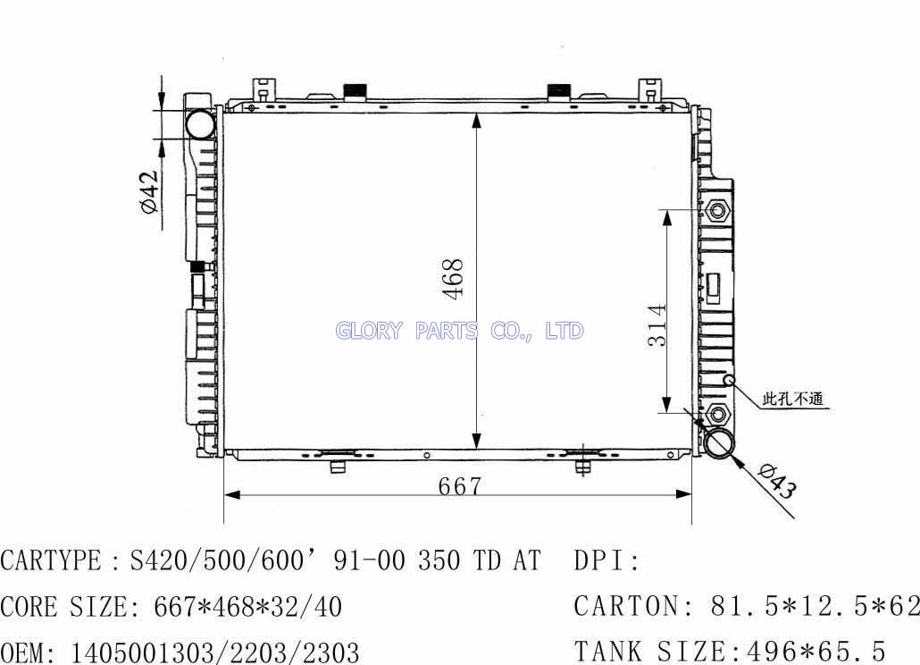 DPI: NISSENS: OEM: 145001303/145002203 CAR MODEL: Mercedes-Benz S420 Auto radiator/automovil radiadores