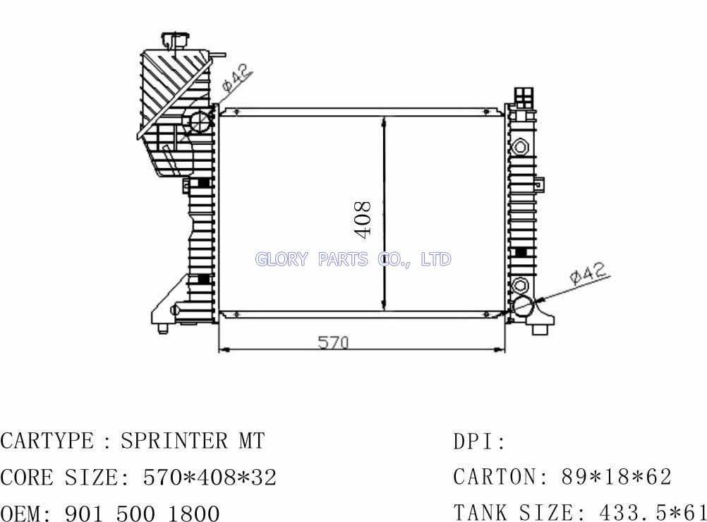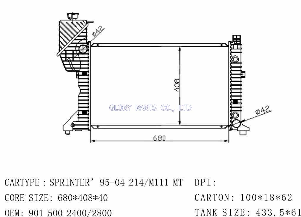 DPI: NISSENS: 62687 OEM: 9015001800 CAR MODEL: Mercedes-Benz SPRINER Auto radiator/automovil radiadores