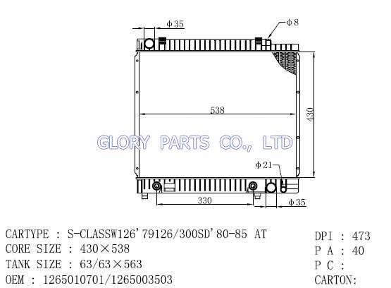 DPI: 473 NISSENS: 62724A OEM: 1265010701 CAR MODEL: Mercedes-Benz S-Class Auto radiator/automovil radiadores