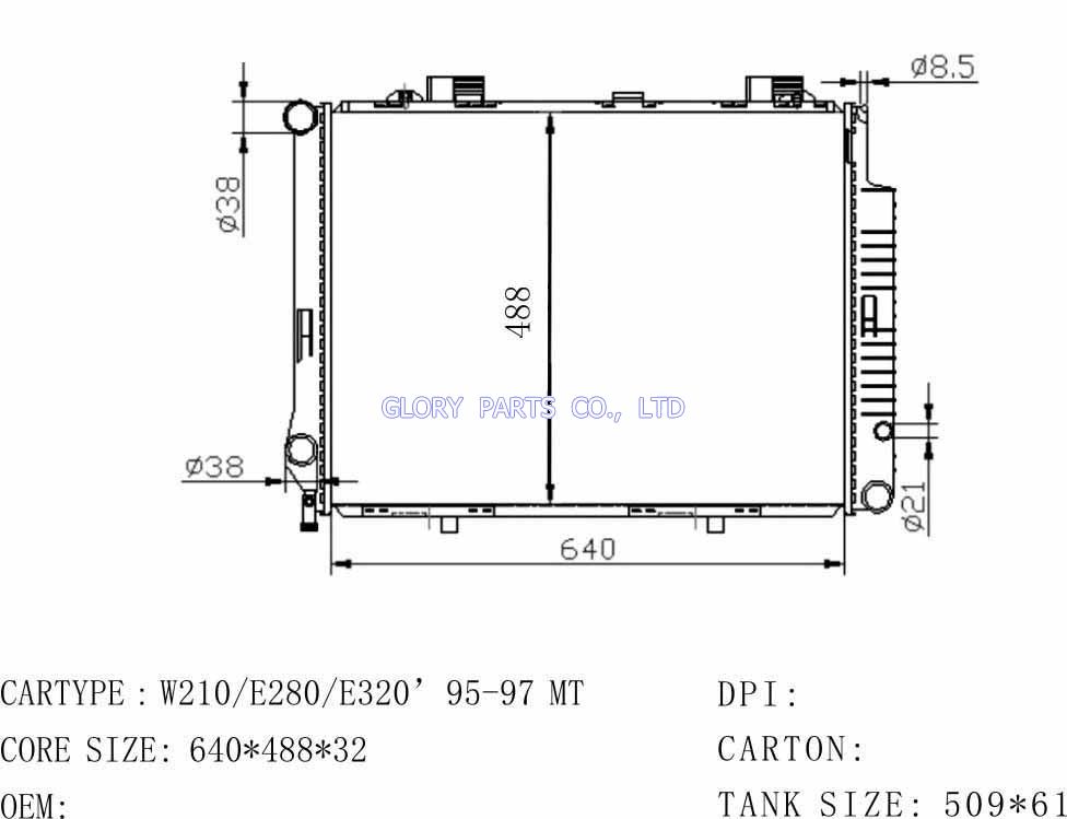 DPI: 2189 NISSENS: 62666A OEM: 2105000903 CAR MODEL: Mercedes-Benz W210/E280 Auto radiator/automovil radiadores